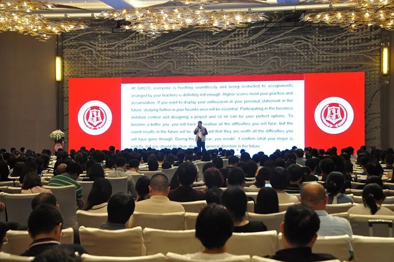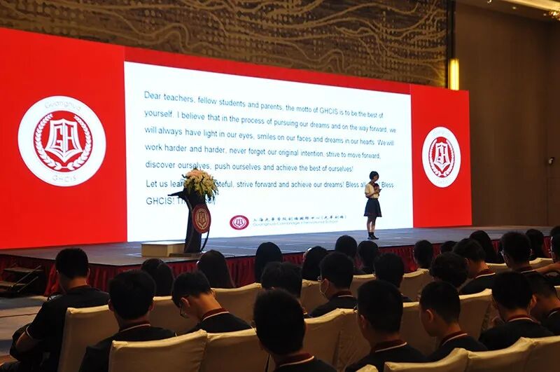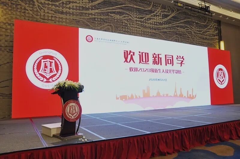 下午三点,光华剑桥2020级新生开学典礼在上海三甲港绿地酒店国际会议中心绿地宴会厅隆重举行,大会由光剑G1&G2年级组组长陈砚紫老师主持。