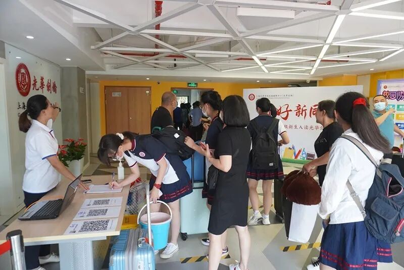 为做好疫情防控工作,筑好健康这道防线,光华剑桥提前对学生宿舍及教室进行了通风及消杀,并倡导同学们错峰进校。在入学报到现场,新生及家长们听从相关老师及保安指挥,出示随申码,测量体温,全程佩戴口罩,秩序井然。