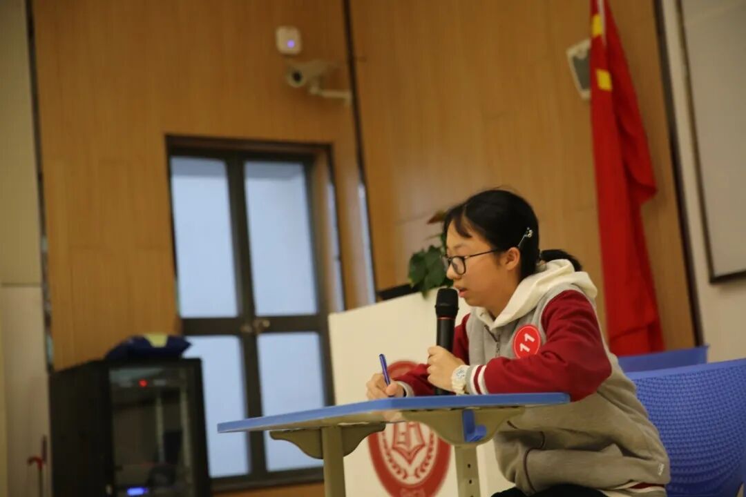在比赛的最后,副校长、英语教研组组长陈广适老师致辞。她说,“相信大家能感受到,此次比赛非常紧张和激烈,每一位从预赛中脱颖而出、站在决赛舞台上比拼的同学都是好样的,值得大家为他/她们热烈鼓掌。特别是金乐言同学,以预赛第一的成绩进入决赛,并最后取得冠军,确实是实至名归。”亲爱的同学们,无论你是否站上了决赛的舞台,取得了怎样的名次,希望你们都能从这次比赛中感受到背单词的重要性,并在活动中得到成长。光剑新生英语大赛的第三项重要赛事——新生英语演讲比赛即将展开,让我们一起期待下一场的精彩!