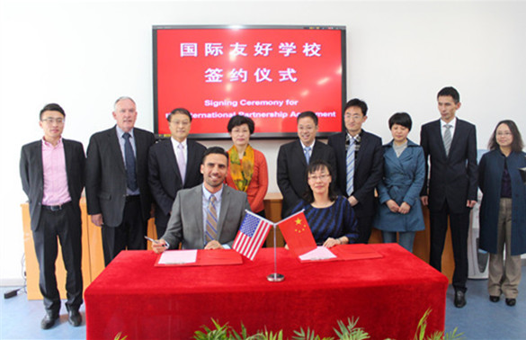 在签约仪式上,无锡外国语学校李莉校长表示,学校将在总结完善三年初中国际课程的基础上,借助剑桥国际教育中心的优势资源,密切和美国玛瑞丹中学的交流合作,既保持国内基础教育的数理优势,又为学生提供适合个性发展的多重文化教育,集中精兵强将加快中外教育比较研究和国际高中课程的创新发展。美国玛瑞丹中学校长Tasi也对深化与中国学校的合作充满信心,希望帮助更多中国优秀学子实现人生的美丽梦想。无锡外国语学校党总支书记解晓南博士也表示,在未来,学校要努力打造成为国内外知名的基础教育优质学校、素质教育示范学校和国际教育特色学校;学校将加深和美国、英国、加拿大、澳大利亚、新加坡、德国、日本等国外一流学校的合作,努力为学生打开通往世界的大门,让每个学生发现更大的、更美的世界,成就最好的自己。