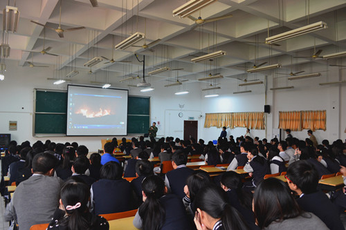 光华浦东的消防演习安排在6日下午举行,学校特别邀请了申江消防中队的武警官兵来到学校,为学生们进行了一场有关火场如何逃生的消防安全知识讲座,讲座中申江消防中队的占指导员为同学们播放了一段他们出警时的实时录像,让学生们感悟到消防安全的重要性,随后他则重点就火灾的预防以及火灾发生后如何自救等内容向同学们进行了讲解,让同学们对一些“习以为常”的逃生方法有了新的认识。比如卫生间真的适合躲藏吗?(如今的卫生间因为一些易燃材料的使用反而不是理想的避难场所了,而且卫生间相对狭小密闭的空间更加大了救援的难度);发生火灾后通过跳楼“自救”的生还几率到底有多大(占指导员非常严肃的告诉同学,不到万不得已一定不能选择跳楼来自救,因为有数据统计,从三楼跳下就是一半致死,百分百致残)……等等一些让同学们原本觉得模棱两可的自救常识在讲座中得到了明确的答案。
