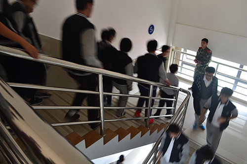尽管是演习,但同学们还是很认真地对待着,9点15分,这场虽然没有实际火情但却让同学有所收获的火灾逃生演习正式结束。
