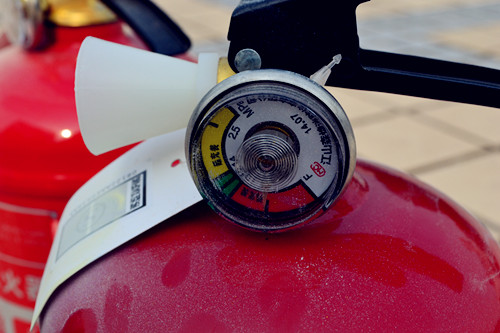 安全小知识:你知道吗?当指针指在黄色区域时,这表示这个灭火器内的压力较大,尽管可以使用,却有爆炸的潜在危险……所以当你要使用灭火器时,请留意一下这个小指针,处于绿色区间表示可以正常使用,指向红色则是表示罐内压力值偏小,使用时就可能喷不出干粉,失效了。