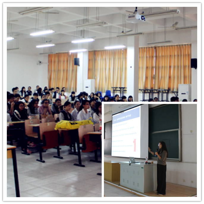 讲座后,Sarah女士与学生们进行了一对一地、更为详尽的交流,指出了中国学生在申请过程中应该避免的误区和应该关注的内容,为有意申报美国大学的同学们提出了很多非常有价值的参考建议。