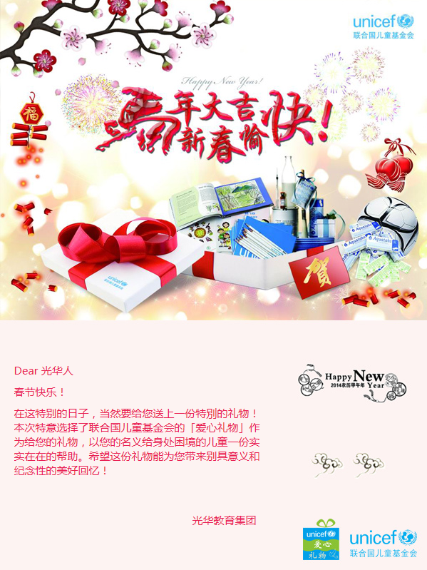 联合国儿童基金会为参与活动的我们特别准备的新年贺卡
