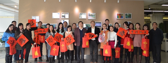 光华教育集团部分领导及员工参与了此次活动,活动中,我们准备了各种寓意美满吉祥的“福”字、“福”袋,由大家以爱心价购买,擅长书法的集团副总裁李正林先生还在现场亲自为我们写福送福。