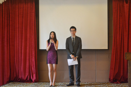 两位主持人宣布第一届光华校友联谊酒会正式开始