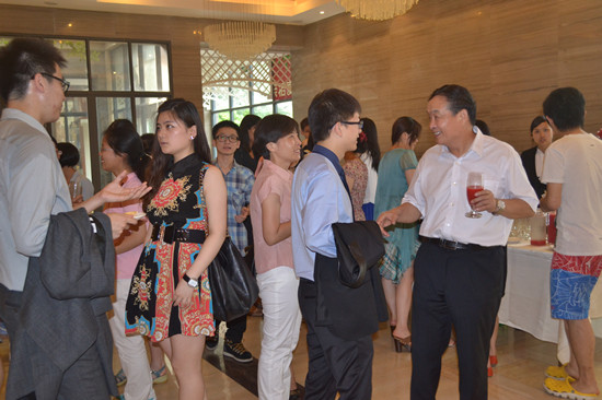 集团董事长鲁育宗先生和榕树下的创办人朱威廉的讲话将酒会的气氛推向高潮。鲁育宗先生对校友会组织者的辛勤工作给予了极高的评价,对这次校友会夏令营取得成功表示祝贺,同时也感谢为此次酒会提供场地的学生家长——柯总。朱威廉先生作了题为《认清自己》的讲话,他和大家分享了自己的人生感悟,在座的同学们受益匪浅。在热烈的掌声中,肖玲老师代表光华学院的教师作了讲话,肖老师的讲话将同学们一下子带回了母校,带回了课堂,带回了学校门口卖拌面的小店,带回了在光华学院度过的夹杂着汗水和笑声的高中生活。