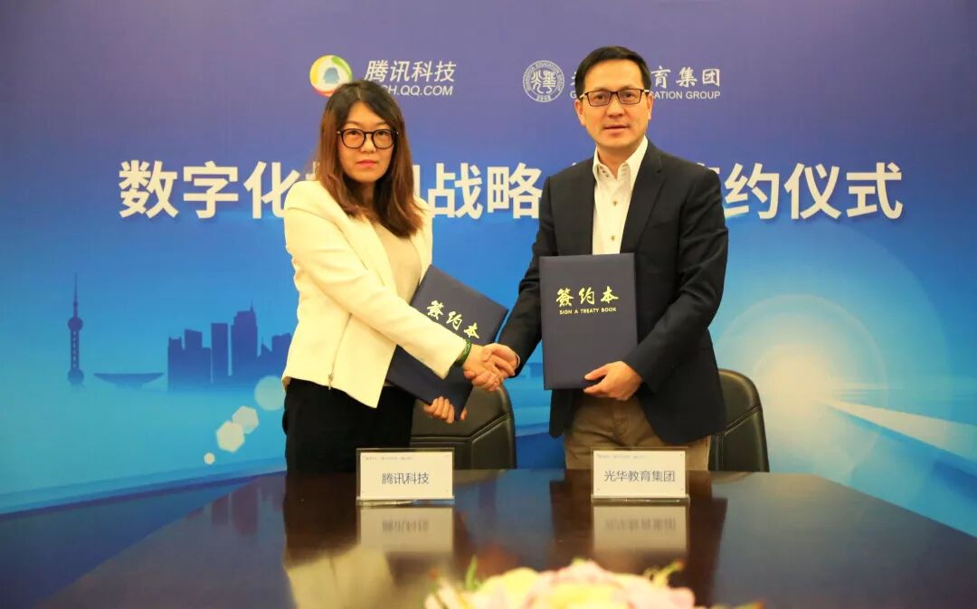 2018年12月28日,光华教育集团与腾讯在光华教育集团总部举行数字校园建设战略合作签约仪式,双方将通过优势互补、资源共享在数字校园等领域开展深入合作,推动数字校园建设。光华教育集团旗下拥有多所国际化学校和教育机构,目前这些学校已经配备比较完善的基础信息化设施,此次与腾讯科技签约,光华期待借助腾讯的大数据、云计算等技术能力,进一步促进光华教育集团及下属学校(教育机构)的信息化发展水平,优化师生服务。同时光华教育集团将利用自身的资源优势协助腾讯微校在北京、上海、深圳、成都等地建设互联网教育创新实验室。